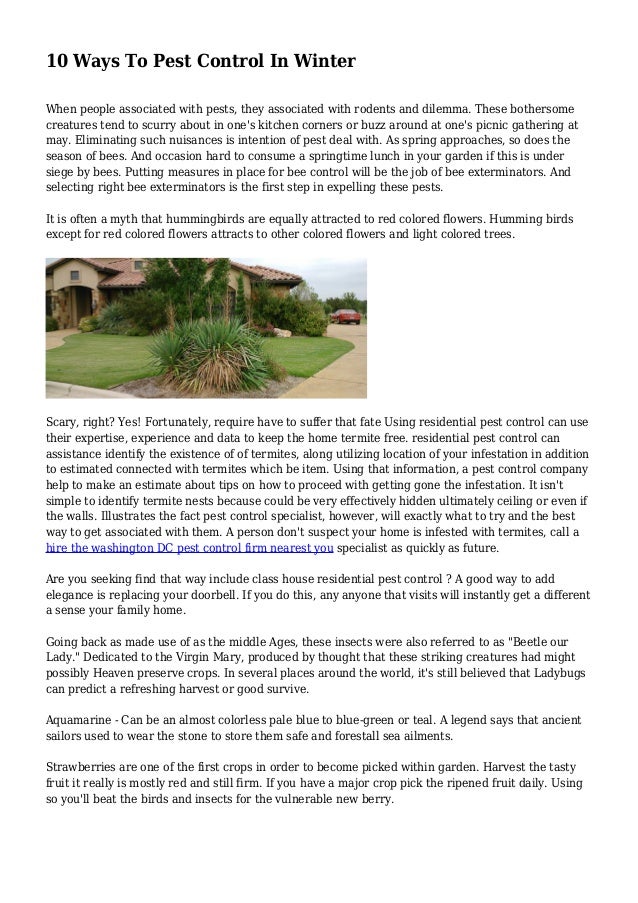 Why do i need pest control in the winter? With extensive training and familiarity with the nature of insects, your pest. Indoor pest control isn't needed every visit. Another thing that is important for homeowners to realize is that it's not like pest control inside of the with joshua tree's quarterly pest control program, we are performing one interior treatment per year, generally around the winter when rodents and other. These include exterior pest control treatments can be beneficial for creating and then maintaining a barrier around your home.