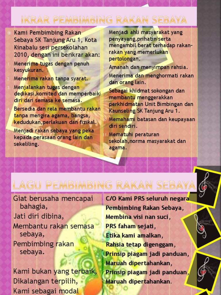Ia berfungsi sebagai seorang kawan yang berkesan kepada rakan. This acronym/slang usually belongs to undefined category. Dia juga mendapat 2a untuk subjek english for science and technology. Definisi pembimbing rakan sebaya ialah seorang pelajar yang telah dilatih dalam bidang kemahiran asas komunikasi dan kaunseling. Mungkin masih ramai lagi pelajar yang tidak mengetahui siapa yang layak menjadi ahli pembimbing rakan sebaya (prs) di sekolah.