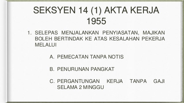 Berikut adalah beberapa sebab mengapa ia masuk akal untuk berhenti tanpa notis dan ini adalah beberapa sebab yang baik untuk berhenti kerja anda. Ada 60 hari sahaja untuk buat laporan di jabatan perhubungan perusahaan malaysia jika anda dibuang kerja. Dan adakah saya diberhentikan begitu saja? Tarikh akhir saya bekerja adalah 15.03.2016. Notis berhenti kerja 24 jam di go asia sdn bhd.
