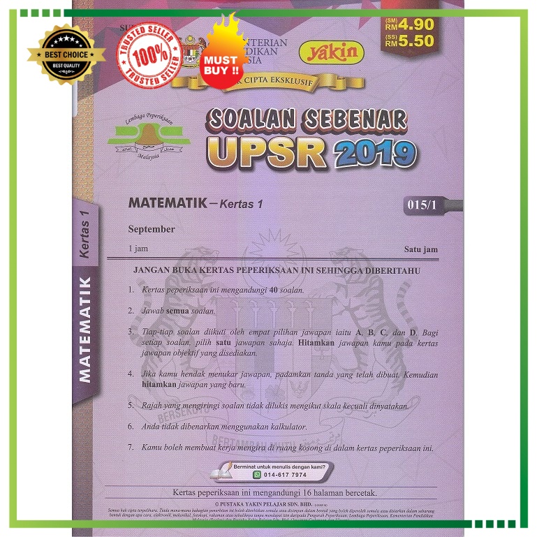 Ksps Upsr Sk 2019 Mathematics Lazada from my-test-11.slatic.net Jawapan modul kimia tingkatan 4, jawapan modul 4 perakaunan untuk perkongsian, jawapan matematik upsr 2016, jawapan matematik tingkatan 5 sasbadi, jawaban somasi, jawapan matematik kertas 1 upsr 2016, jawaban mario, jawapan words of wonders. Sulit soalan sains upsr 2016 sumbangan : Tulis jawapan kamu dengan jelas. Download matematik upsr apk 1.7.0.1 for android. Bahasa melayu, bahasa inggeris, matematik, sains. Kupasan terhadap prestasi calon dilengkapi dengan penjelasan tentang prestasi terperinci bagi setiap soalan upsr 2016. The kmj lists down the analysis of the quality of answers in past upsr examinations for every paper. Berikut merupakan soalan upsr 2016 bagi matapelajaran matematik.